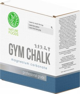 Спортивная магнезия Nature Foods - это белый порошок, состоящий в основном из карбоната магния и предназначенный для подсушивания рук, а также улучшения их сцепления со снарядом при занятиях гимнастикой, тяжелой атлетикой, спортивным альпинизмом и другими видами спорта. Магнезия несколько снижает потоотделение в области ладоней и впитывает пот, увеличивая трение, за счет чего намного снижается вероятность проскальзывания ладоней на грифе или перекладине. Таким образом уменьшается вероятность получить травму, а также исключается необходимость тратить лишние усилия и внимание на удержание снаряда в руках и, следовательно, повышается эффективность тренировок. Магнезия в брикетах (кубиках) очень удобна - можно быстро смазать руки (как куском мыла), при этом минимизируется рассыпание магнезии и распыление ее в воздухе.