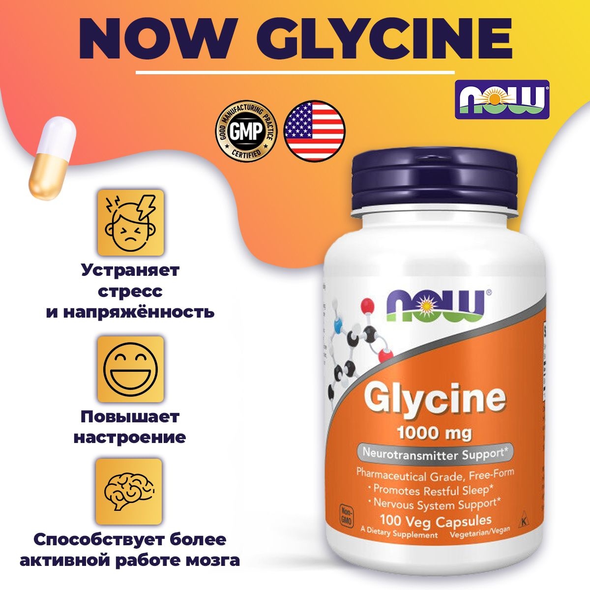Now Glycine 1000 mg 100 капсул