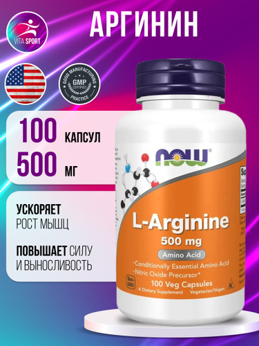 Now Foods L-Arginine 500 мг – это источник энергии, крепких сосудов и повышенной выносливости. Поддержите активность и здоровье на новом уровне.