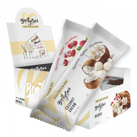 Состав: Концентрат сывороточного белка; концентрат молочного белка; растворимое кукурузное волокно (клетчатка, пребиотик); вода очищенная; изомальтоолигосахарид; кокосовая стружка; кокосовое масло; влагоудерживающие агенты: сорбитовый сироп, глицерин; эмульгатор: соевый лецитин; антиокислитель: лимонная кислота; ароматизатор идентичный натуральному; клетчатка пшеничная нерастворимая; подсластитель: сукралоза; консервант: сорбиновая кислота.