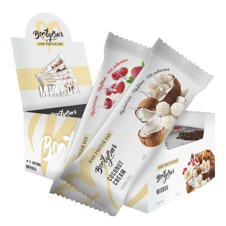 Состав: Концентрат сывороточного белка; концентрат молочного белка; растворимое кукурузное волокно (клетчатка, пребиотик); вода очищенная; изомальтоолигосахарид; кокосовая стружка; кокосовое масло; влагоудерживающие агенты: сорбитовый сироп, глицерин; эмульгатор: соевый лецитин; антиокислитель: лимонная кислота; ароматизатор идентичный натуральному; клетчатка пшеничная нерастворимая; подсластитель: сукралоза; консервант: сорбиновая кислота.