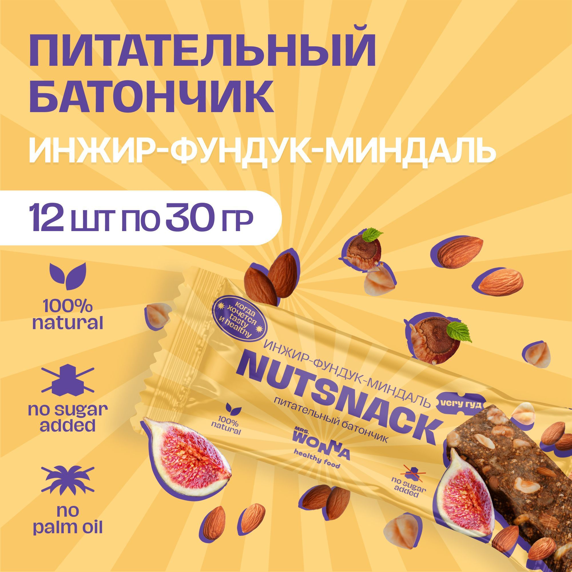 Протеиновый батончик Mrs.Wonna NUTSNACK 30 гр с инжиром, фундуком и миндалем