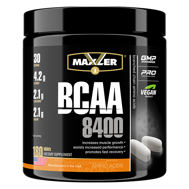 БЦАА играют важную роль в построении мышц, способствуют синтезу белка в организме, росту и поддержанию мышечной массы. БЦАА помогаю бороться с болью в мышцах и ускоряют восстановление мышц после интенсивных тренировок. Принимайте БЦАА 8400 до и после тренировок для увеличения мышечной массы, выносливости, а также быстрого восстановления.