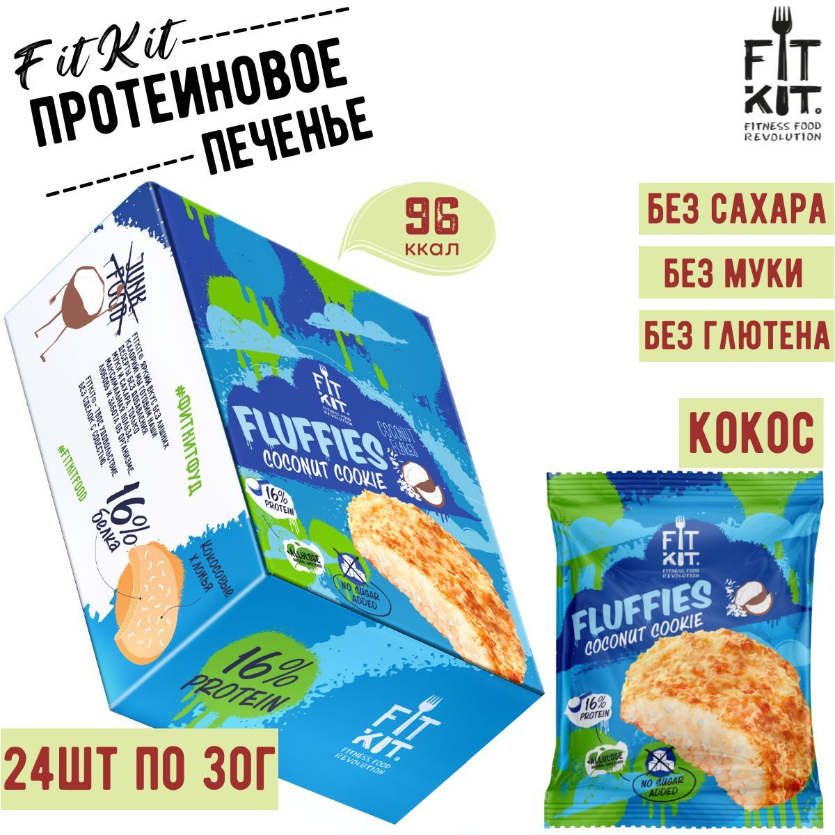 Fit Kit Protein Fluffies 30 гр вкус кокос