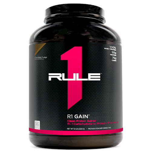 Гейнер для набора массы RuleOne R1 Gain существенным образом отличается от других американских и европейских конкурентов благодаря тому, что основная часть калорий, поступающих в организм, получается от белка. Одна порция содержит следующее уникальное соотношение белка к углеводам 50 грамм / 75 грамм.