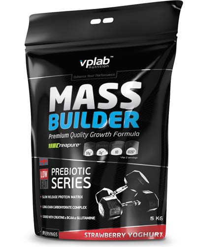 Mass Builder фирмы VP Laboratory — уникальная смесь углеводов и белков, содержащая 21 витамин, минеральные вещества, микроэлементы и креатин для построения мышечной массы, с рекордно низким содержанием жиров. Главная фишка этого гейнера — сывороточный протеин, полученный из молока коров на травяном откорме. Это чистый и легкоусвояемый продукт. Глютамин в составе гейнера надежно защищает мышцы от разрушения. Две порции коктейля Mass Builder в день заряжают бодибилдера энергией во время фазы наращивания мышечной массы. Даже при интенсивной тренировке две порции коктейля обеспечивают достаточный запас калорий, который необходим для наращивания мускулатуры, и препятствуют таким образом снижению ценной мышечной массы.
