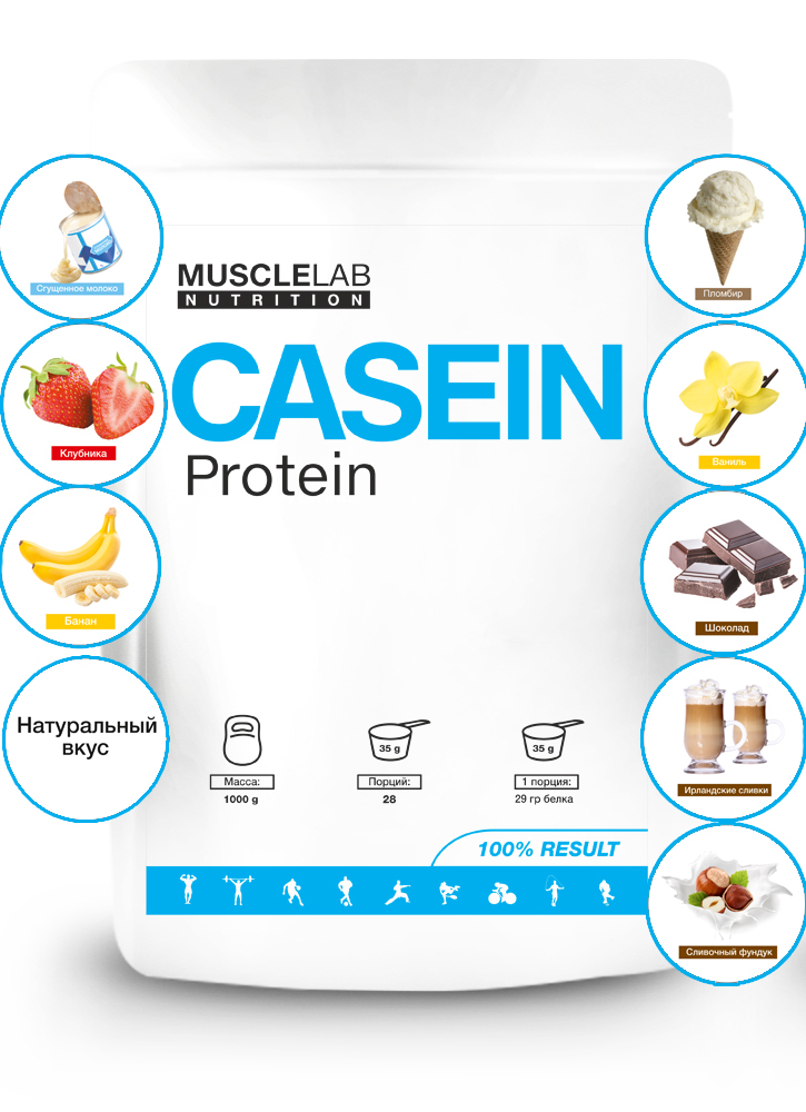 MuscleLab Nutrition Casein Protein (1000 гр) вкус банан, натуральный, сливки