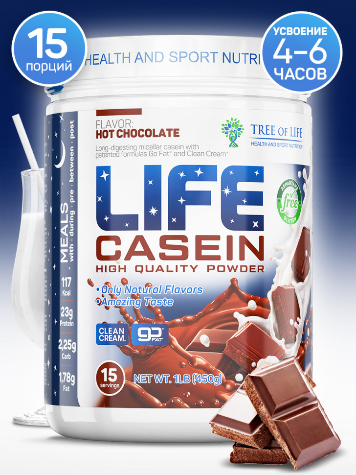 Life Casein от Tree of Life – высококачественный казеиновый протеин с потрясающим вкусом. Казеин – самый медленный вид протеина, на полное уcвоение которого организму требуется порядка 5-8 часов. Этот протеин с богатым аминокислотным составом усваивается постепенно, даря вам пролонгированную энергию и длительное питание для ваших мышц, надежно защищая их от катаболизма.