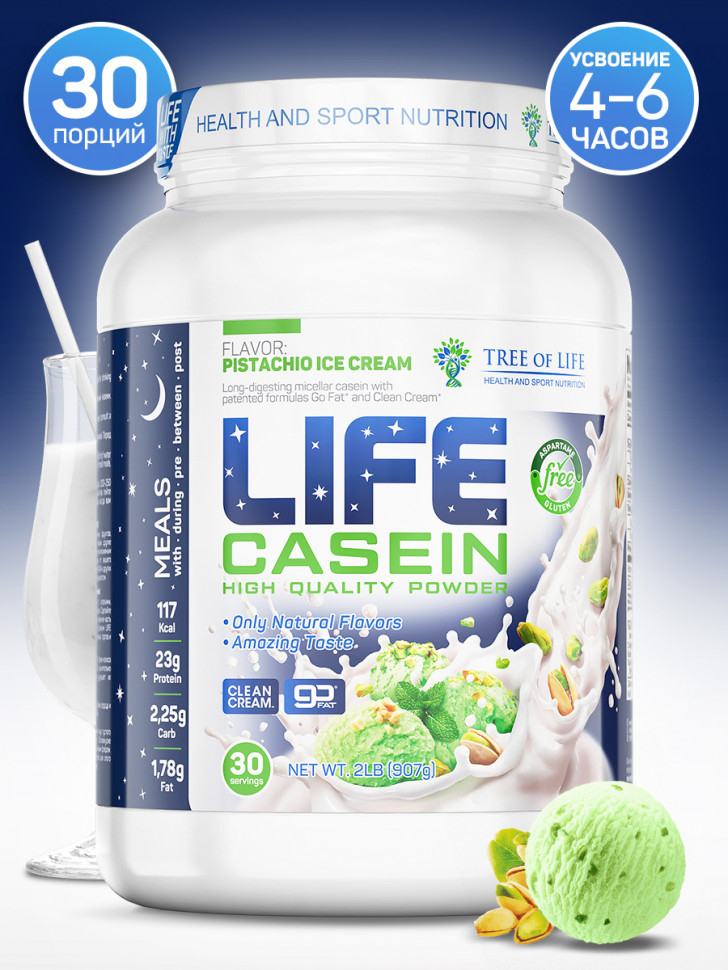 Life Casein от Tree of Life – высококачественный казеиновый протеин с потрясающим вкусом. Казеин – самый медленный вид протеина, на полное уcвоение которого организму требуется порядка 5-8 часов. Этот протеин с богатым аминокислотным составом усваивается постепенно, даря вам пролонгированную энергию и длительное питание для ваших мышц, надежно защищая их от катаболизма.