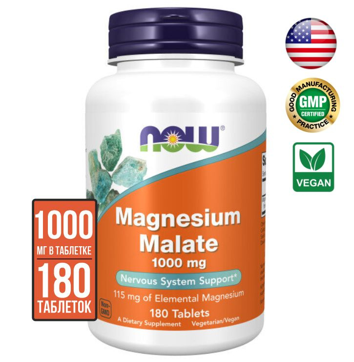 NOW Magnesium Malate 1000 mg 180 tabs/NOW Магний Малат 1000 мг 180 таблеток