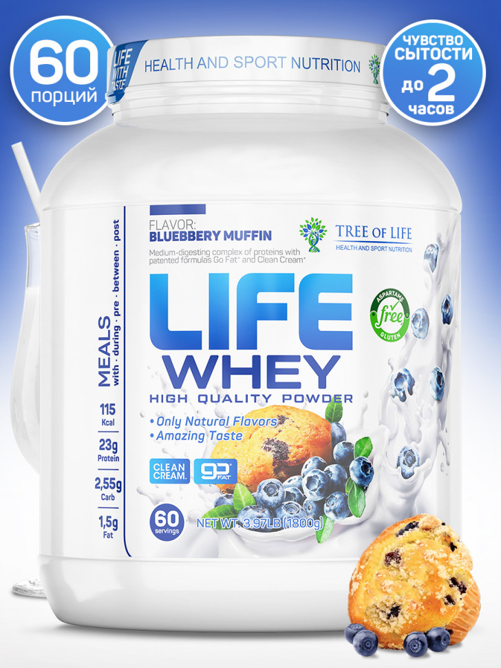 Tree of Life Whey Protein, 1800 гр вкус черничный маффин