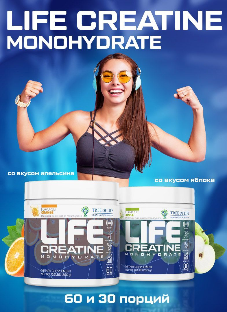 Креатин Life Creatine Monohydrate, Лайф Без сахара, Апельсин, Яблоко 30 порций