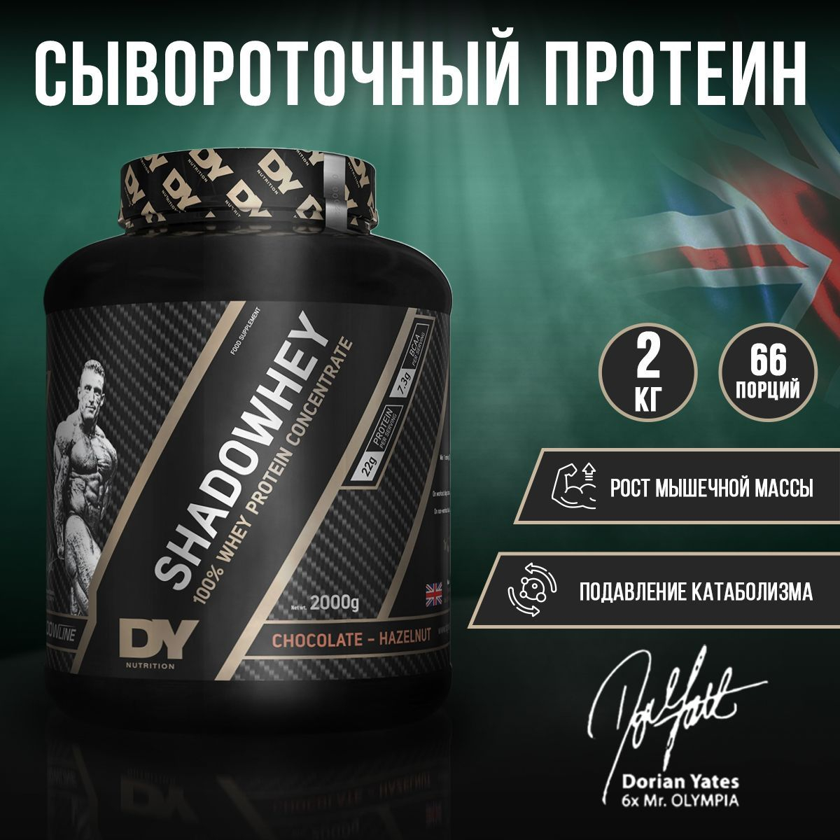 Dorian Yates Nutrition SHADOWHEY Concentrate protein 2000 гр вкус шоколад-орех