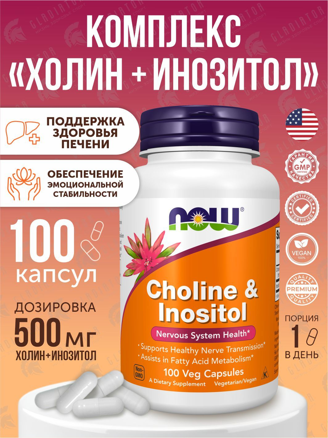 Холин и инозитол 500 мг NOW, для мозга и нервной системы, 100 капсул