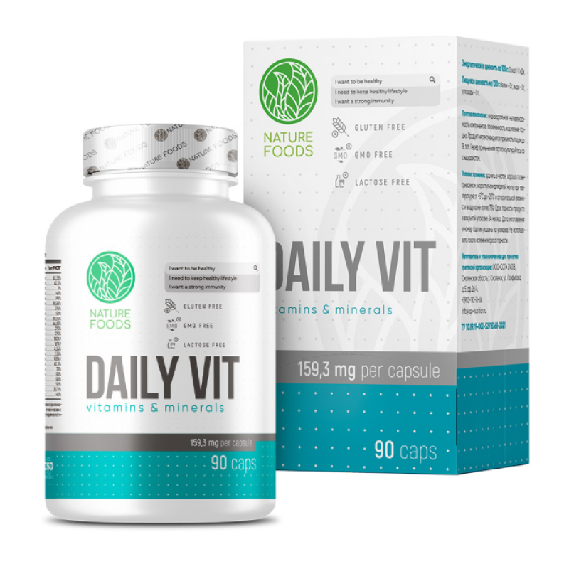 Nature Foods Daily Vit – это универсальный комплекс витаминов для каждодневного приема. Подходит для любой категории людей, не требует наличия регулярной физической нагрузки.
