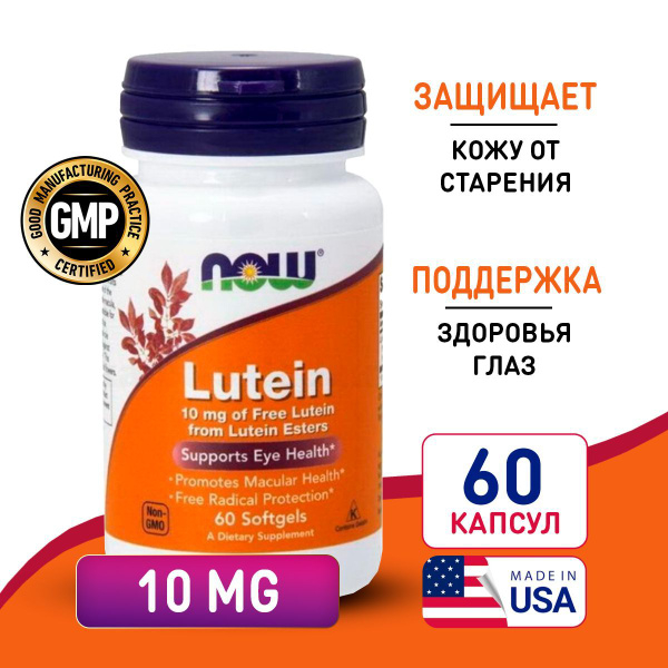 NOW Lutein 10 mg 60 softgels / Лютеин 10 мг 60 софтгелей