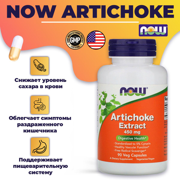 NOW Artichoke Extract, Экстракт Артишока 450 мг 90 капсул