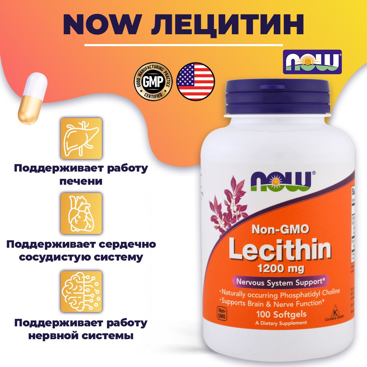 Описание NOW Lecithin 1200 mg: