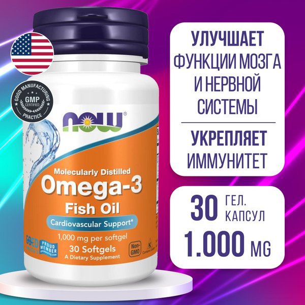 Биологически активная добавка к пище "Омега-3" 1000 мг NOW, 30 капсул