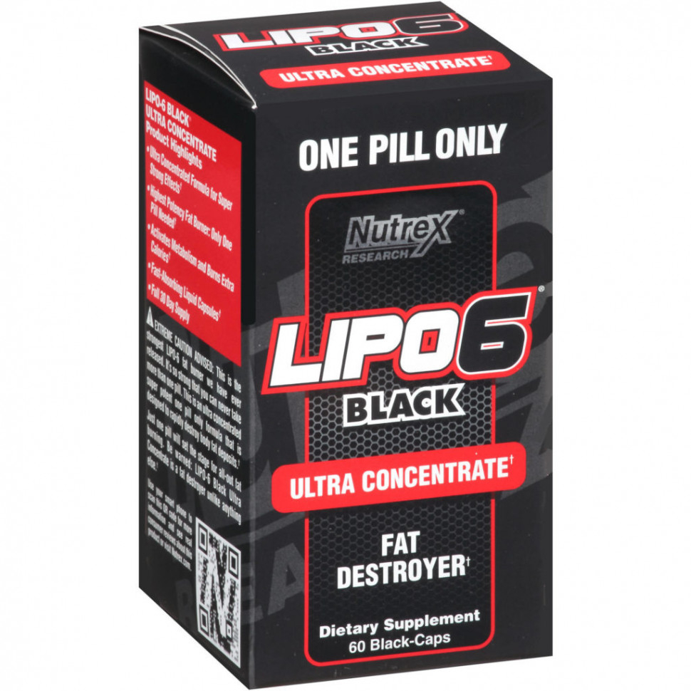 LIPO‑6 Black — самый подлый и жестокий сжигатель жира, который эта планета когда-либо видела. Мы спустились в лабораторию и приготовили самую беспощадную смесь для сжигания жира, которую только можно себе представить. Эта злая формула работает на территории, на которую никакой другой сжигатель жира никогда не осмелился пройти. Lipo 6 Black нападает на жир с инстинктом убийцы, заложенным в формулу, и мгновенно уничтожает жир там, где он попадается. Добро пожаловать в подполье!