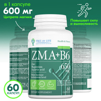 ЗМА, Витамины и минералы Zn+Mg+B6 Tree of Life 60 капсул